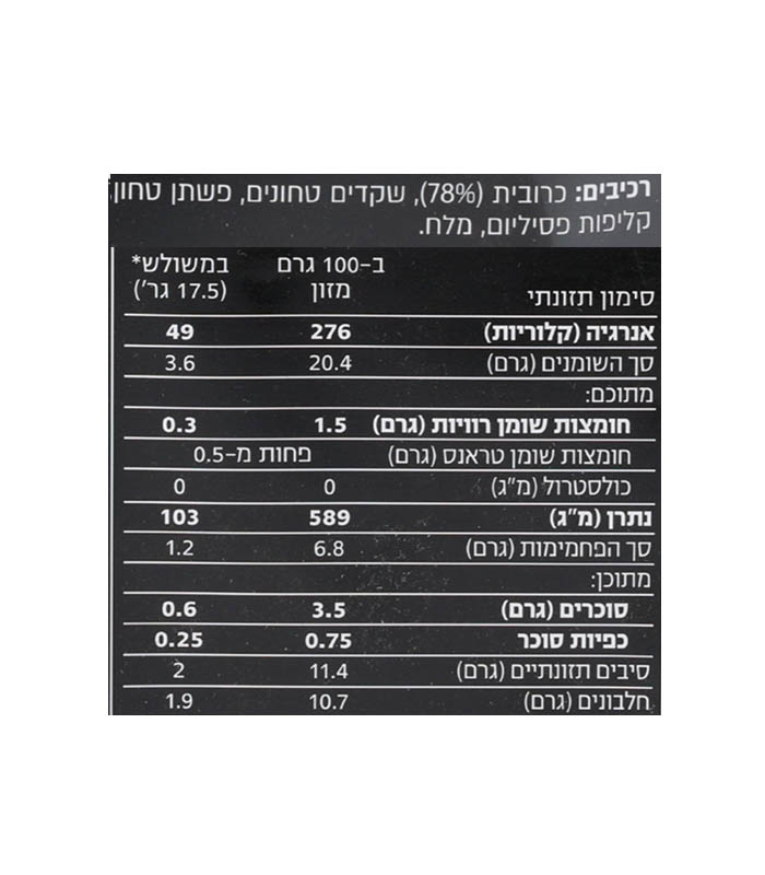 - נוצר עם מחשבה על בריאותכם - מקסימום 3 גרם פחמימות נטו למנה .